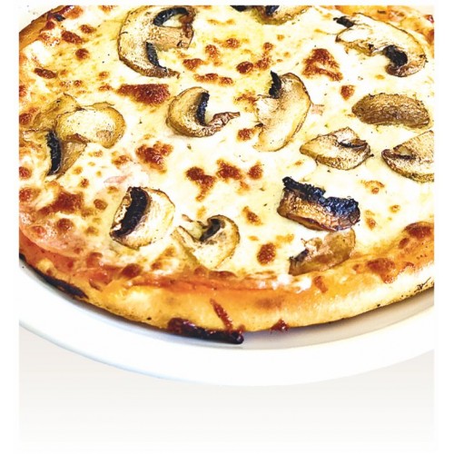 моцарела, маслини, пармезан, гъби, лук, чесън, домат, чушки, доматен сос