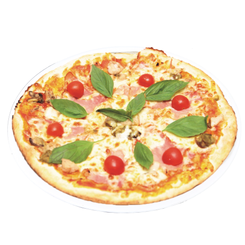 шунка, гъби, сирене, моцарела, доматен сос, маслини